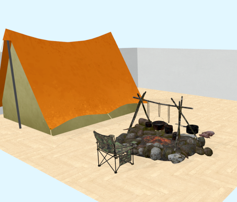 小朋友用创造家的空间创作工具搭建了一个露营3D场景!细节满满!