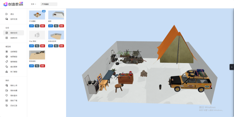 这就是我用全新上线的「创造家空间创作工具」创造的第一个作品——一个可以随时“入住”的数字露营地!